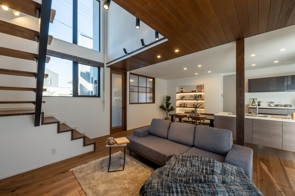 回遊性のある家事動線、落ち着きのあるシックなテイストなどにこだわったモデルハウス。