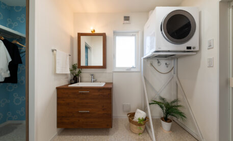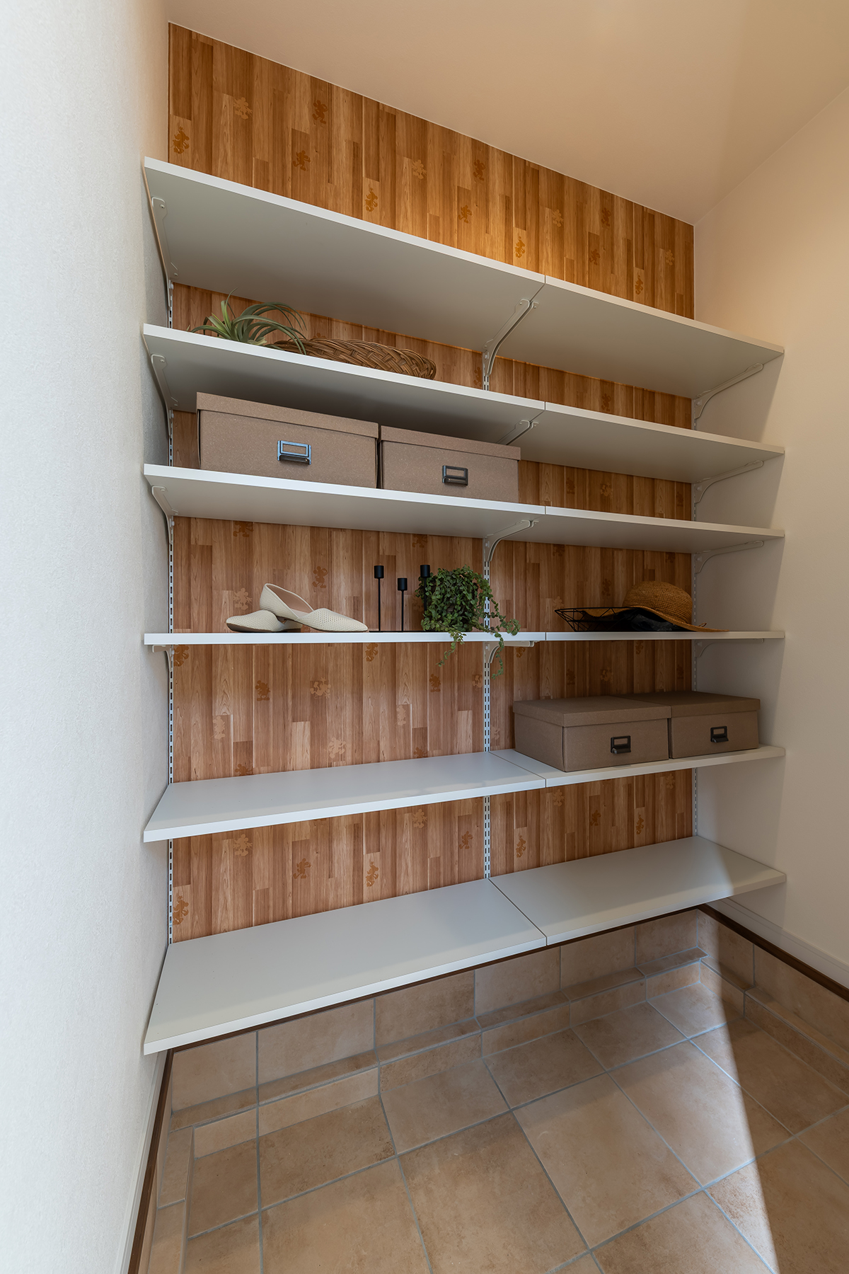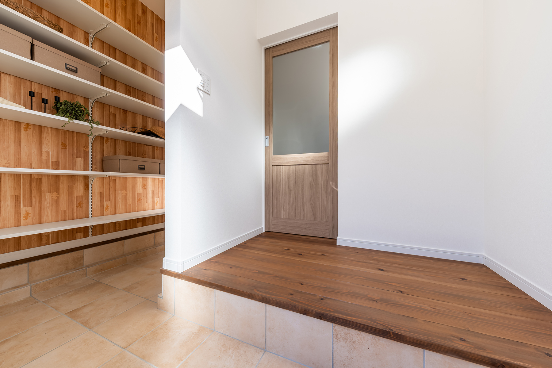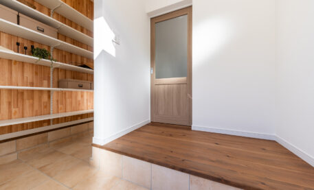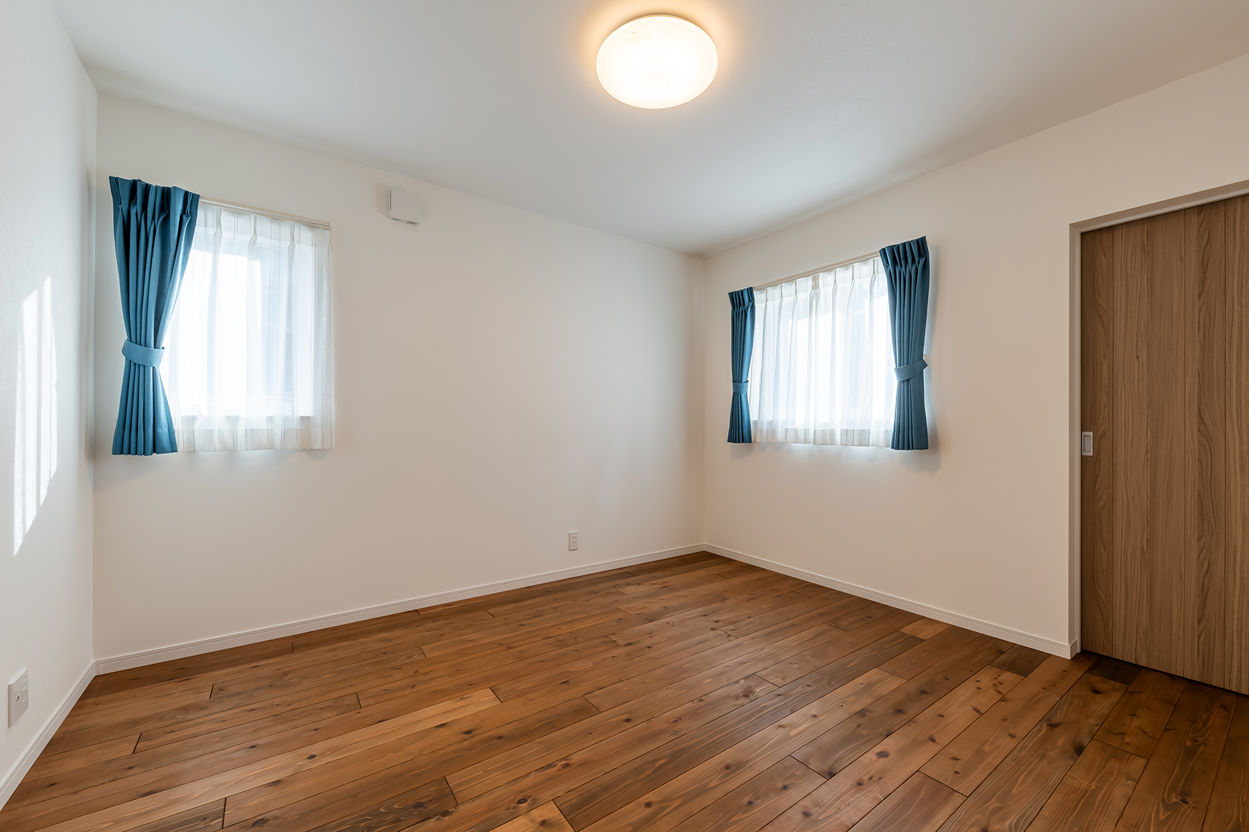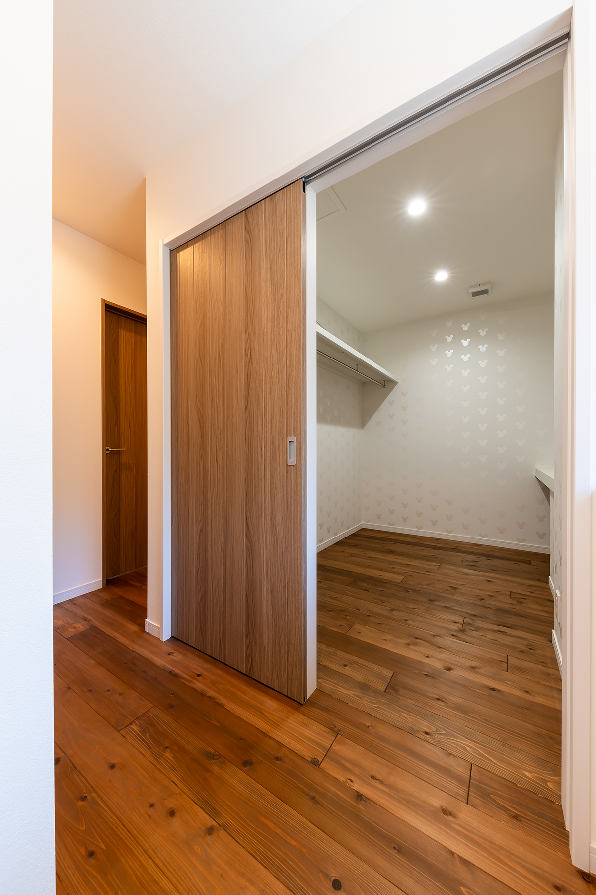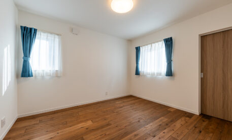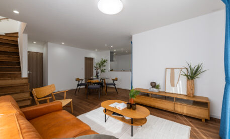 分譲地の中でも1日中陽当たりの良い場所を選び、緑を楽しめるように考えられたH様邸。 リビングに大きな窓を設けることで朝昼夕といつでも日の光が楽しめるようになっている。 LDKもゆとりのある空間で、好きな場所でのんびり過ごしながらも、家族で声かけがしやすい ほどよい距離感と配置にこだわった。 WICを1階2階ともに設けた充実の収納空間、遊び心のあるクロス使いなど、日常がより豊かになる工夫がたくさん詰まったお家。 お家時間が楽しく過ごせるお家となった。