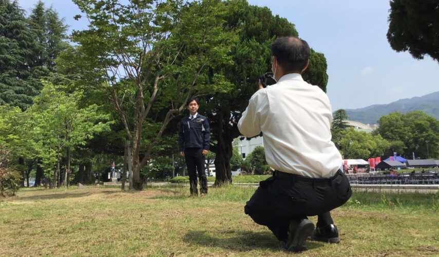 この蒸し暑い中、スタッフ写真を撮るために上着を着用してカンカン照りの日差しの中、