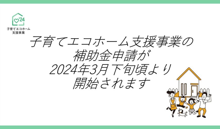 2024キャンペーン「子育てエコホーム支援事業」 Share *********************************************** 子育てエコホーム支援事業は、エネルギー価格などの物価高騰の影響を受けやすい子育て世帯・若者夫婦世帯による高い省エネ性能を有する新築住宅の取得や、住宅の省エネ改修等に対して支援することにより、子育て世帯・若者夫婦世帯等による省エネ投資の下支えを行い、2050年のカーボンニュートラルの実現を図る事業です。 *********************************************** ↗「子育てエコホーム支援事業」公式サイトはこちらから ↗「住宅省エネ2024キャンペーン」公式サイトはこちらから