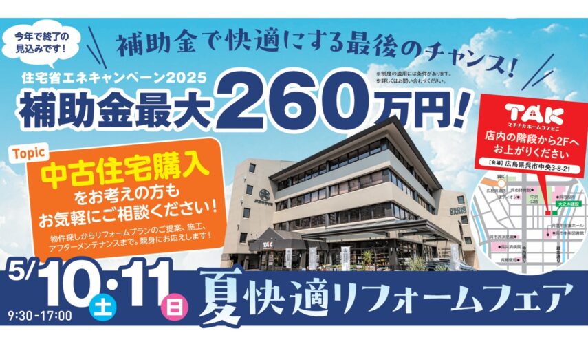 5月10日㊏・11日㊐の2日間『夏快適リフォームフェア』を開催いたします!