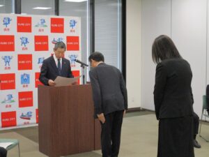 (3月末に呉市役所において表彰式が行われ、社長と共に出席して参りました!)