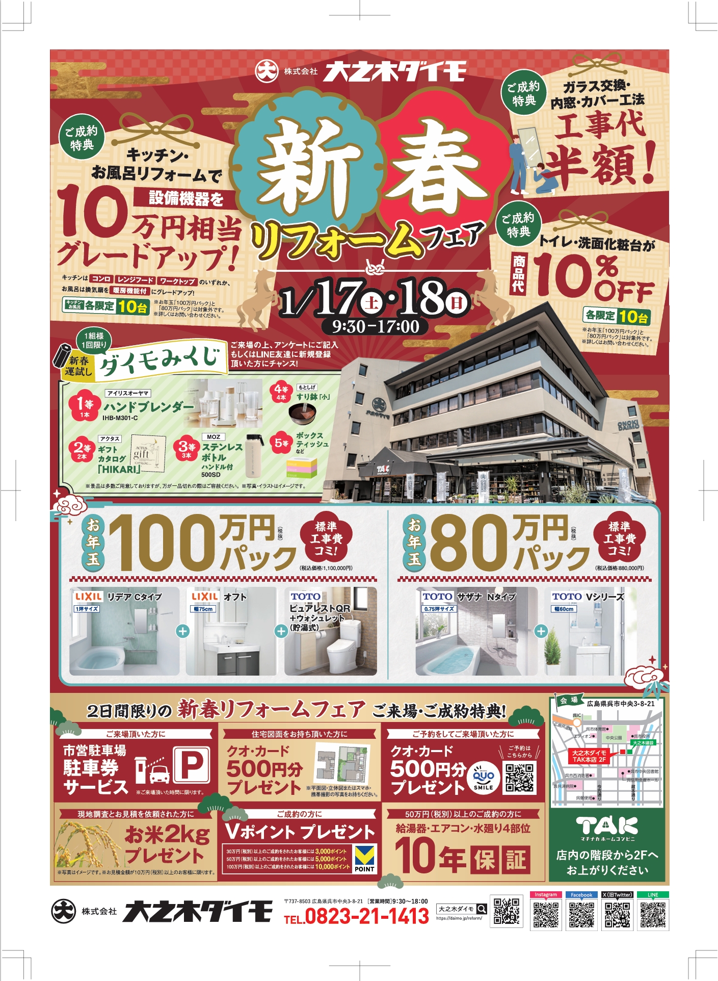 1月17日㊏・18日㊐の2日間『新春リフォームフェア』を開催いたします!