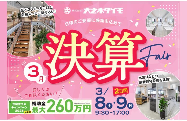 3月8日㊏・9日㊐の2日間『3月決算フェア』を開催いたします! …