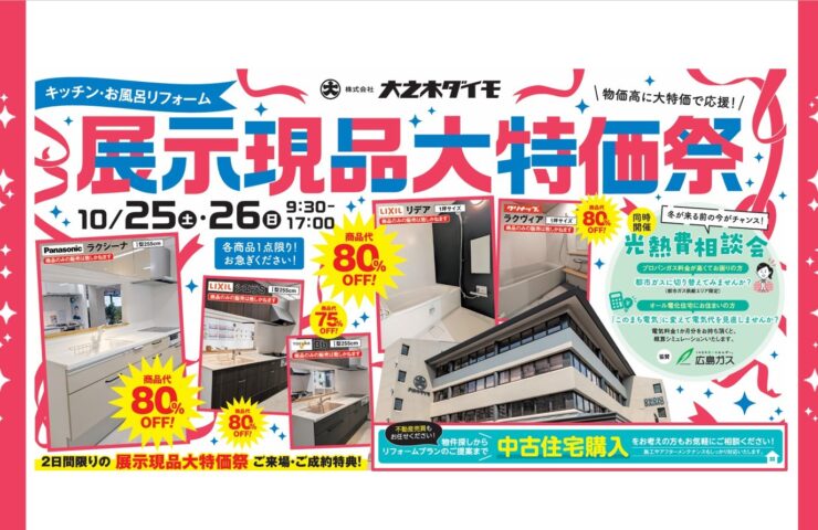 10月25日㊏・26日㊐の2日間『展示現品大特価祭』を開催いたし…