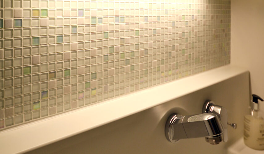既製品の洗面台を使ってタイルを張り、オリジナル洗面台に